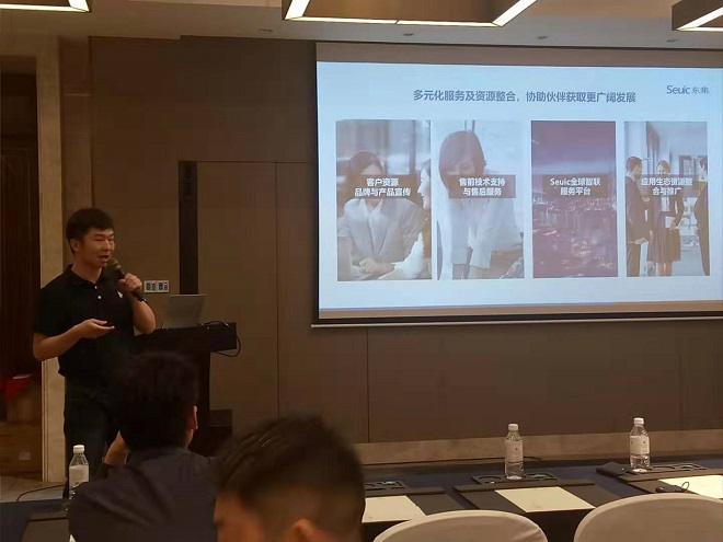 7、西安向榮銷售總監(jiān)耿濤先生為大會(huì)致辭,耿先生首先分享了西安向榮的品牌之路,之后總結(jié)了向榮從起初的盲從到現(xiàn)在的品牌優(yōu)選,接著分享了東芝、東集、民德等從品牌優(yōu)勢(shì)、技術(shù)實(shí)力、售后服務(wù)等方面給大家?guī)?lái)的無(wú)形保障。