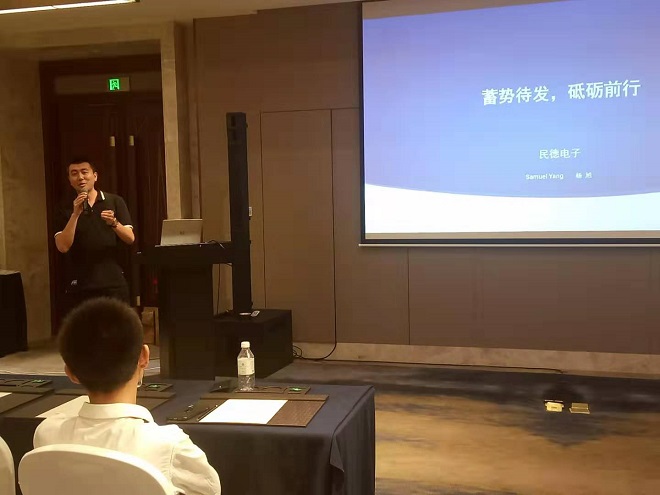 5、深圳市民德電子科技股份有限公司銷售總監(jiān)楊旭先生做了精彩演講。楊總監(jiān)為我們講述了身邊的條碼故事,共同探討條碼的后續(xù)之路。民德產(chǎn)品廣泛應(yīng)用于零售、物流、倉(cāng)儲(chǔ)、醫(yī)療健康、工業(yè)制造和電子商務(wù)等產(chǎn)業(yè)的信息化管理領(lǐng)域,銷售及售后網(wǎng)絡(luò)遍及中國(guó)各地和歐洲、非洲、南美洲、東南亞等多個(gè)國(guó)家;我們?cè)敢庖恢迸c之前行!