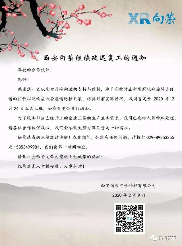 西安向榮繼續(xù)延遲復(fù)工的通知