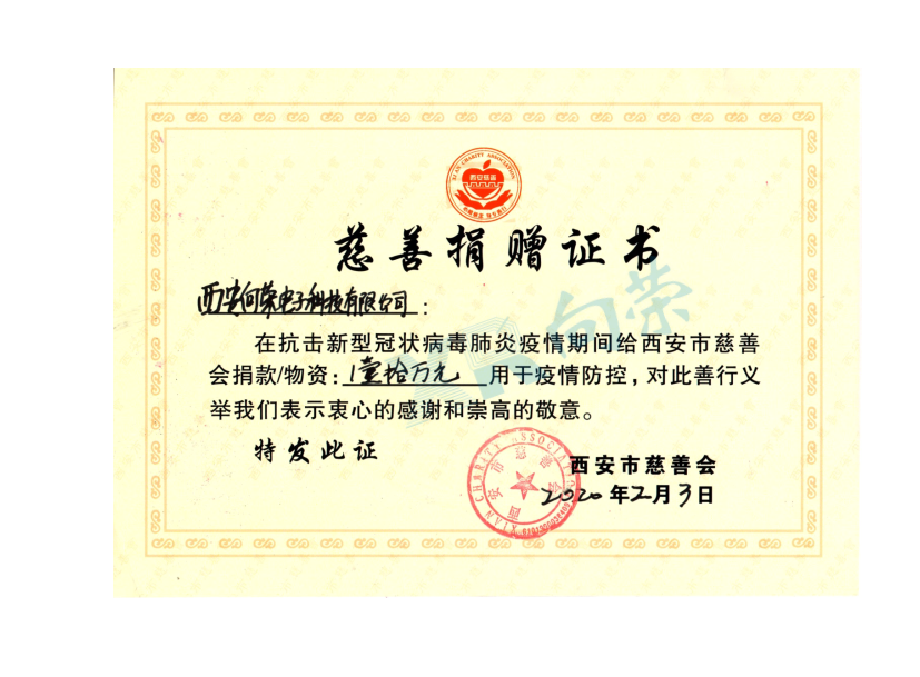 當(dāng)前位置 > 主頁(yè) > 榮譽(yù)資質(zhì) > 西安向榮為新冠疫情捐款十萬(wàn)貢獻(xiàn)向榮力量
