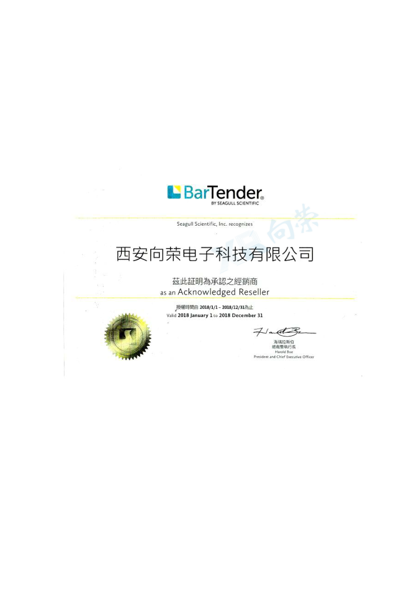 當(dāng)前位置 > 主頁 > 榮譽(yù)資質(zhì) > 恭喜西安向榮獲得Bartender授權(quán)