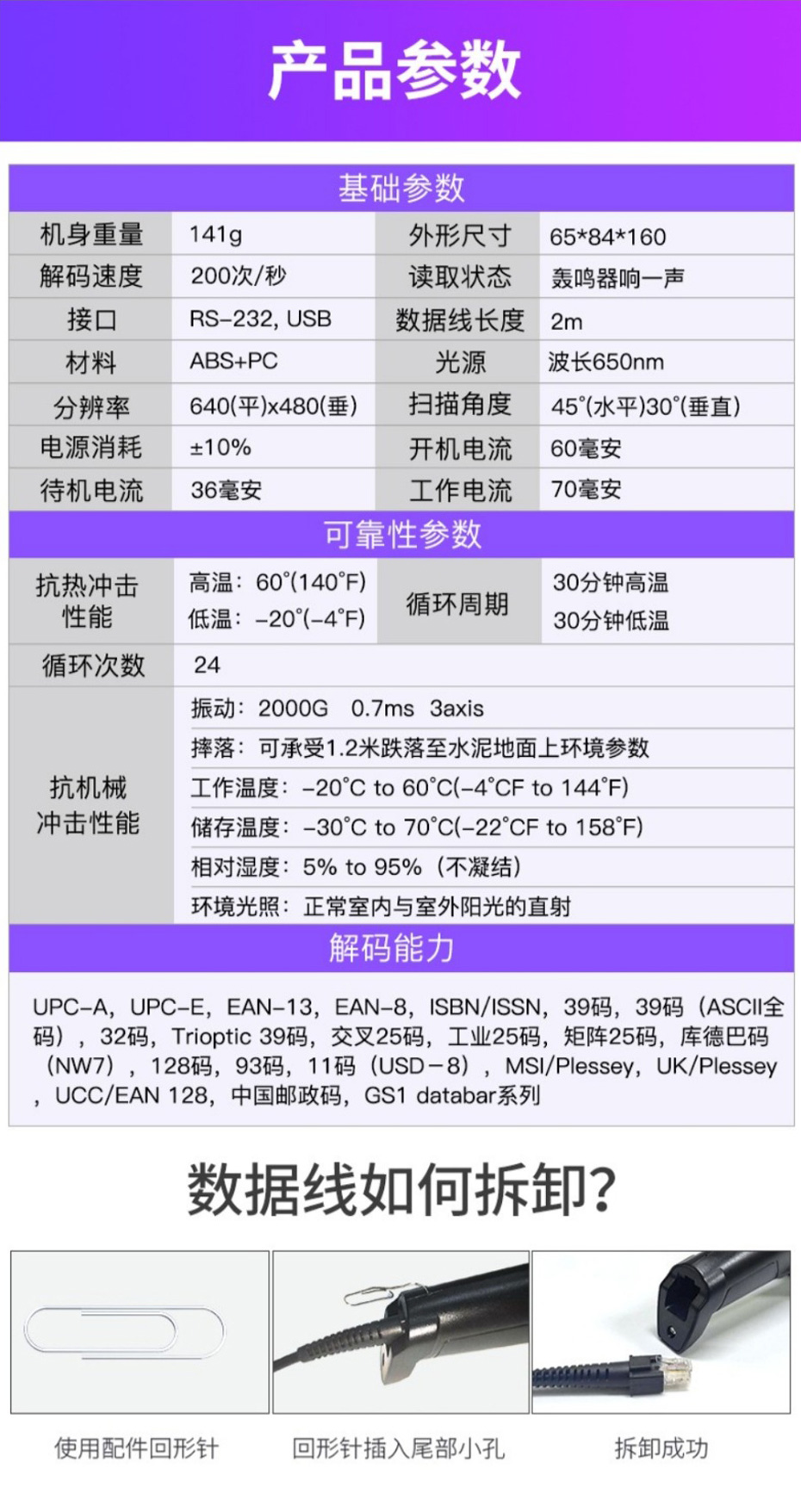 紫光(UNIS)H100 掃描槍,即插即掃方便快捷,一維/超市/商場(chǎng)/企業(yè)皆宜。