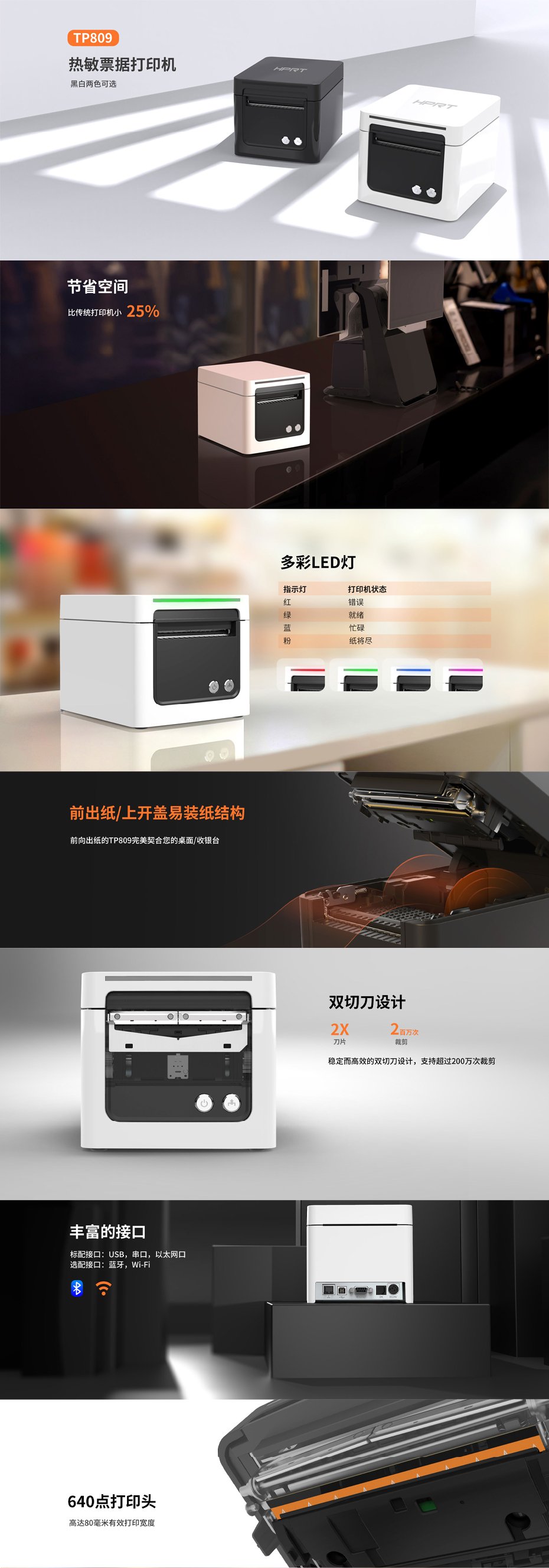 漢印TP809有黑白兩色可選,小巧易收納,雙切刀設(shè)計,豐富接口,打印快速,應(yīng)用廣泛。