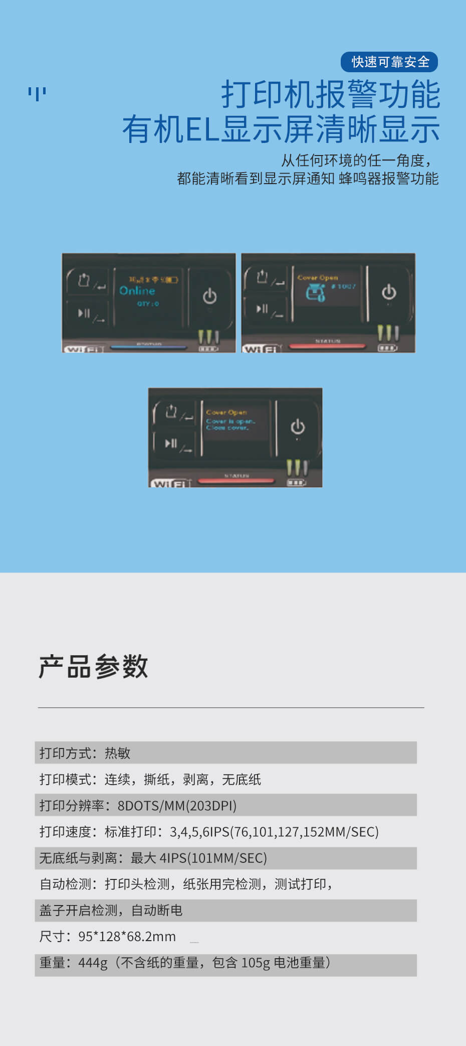 2英寸移動打印機,高速可靠,標配無底紙打印。