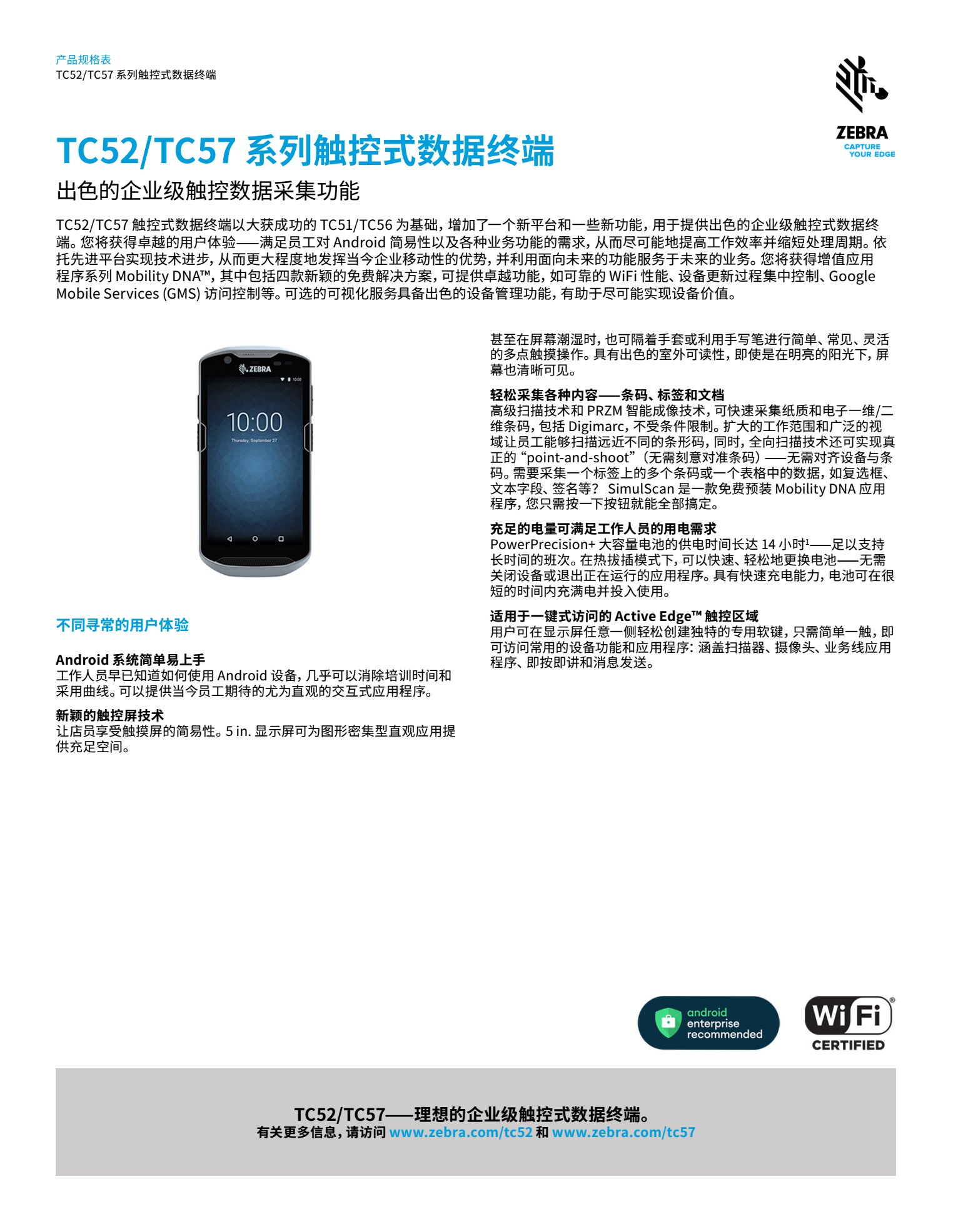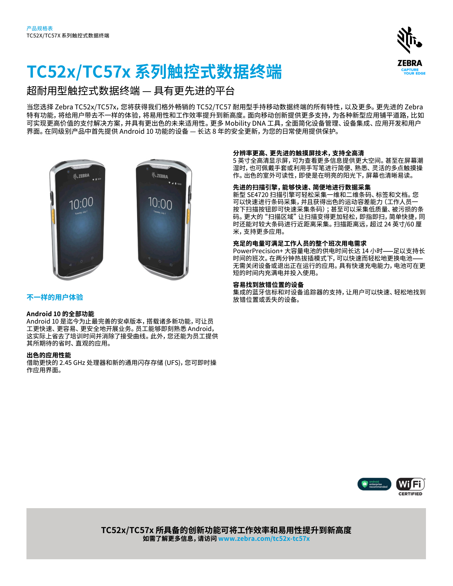 當(dāng)您選擇 TC52x/TC57x,您將獲得我們格外暢銷(xiāo)的 TC52/TC57 耐用型手持移動(dòng)數(shù)據(jù)終端的所有特性,以及更多??商峁┳吭接脩?hù)體驗(yàn)的更多 Zebra 獨(dú)有先進(jìn)功能、為最新移動(dòng)創(chuàng)新提供的更多支持,以及更多的Mobility DNA 工具,其設(shè)備管理也比以往更簡(jiǎn)單。提供長(zhǎng)達(dá) 8 年的安全更新,全力護(hù)航設(shè)備運(yùn)行的每一天。