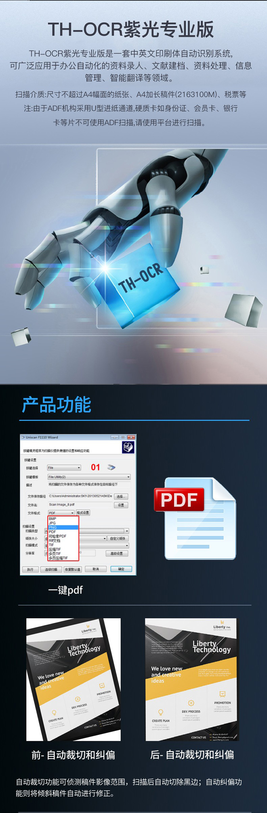 4、可實現(xiàn)自動裁切、糾偏、去除空白頁功能