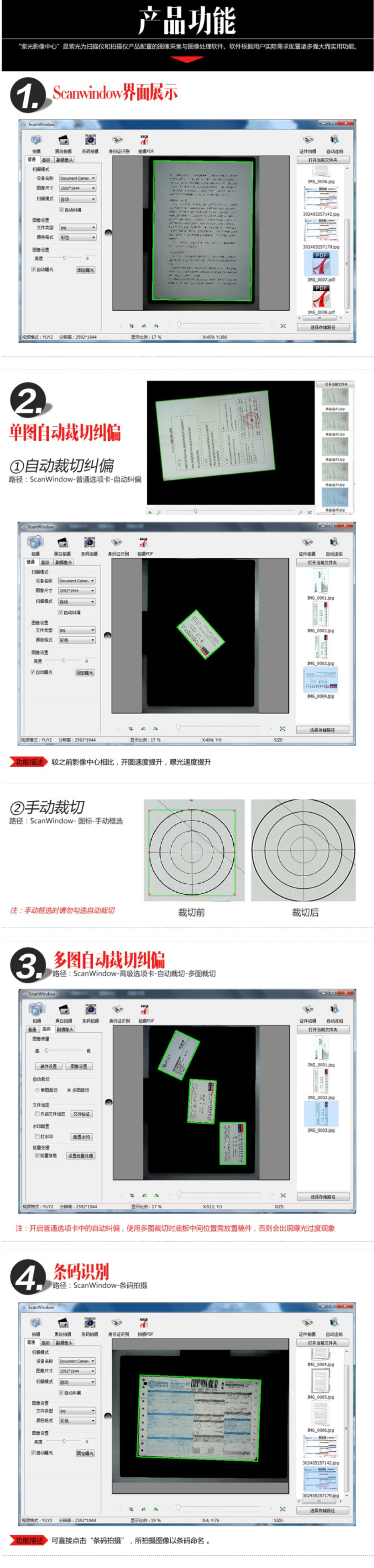 7.強(qiáng)大的智能裁切糾偏功能,讓拍攝的圖像更美觀。