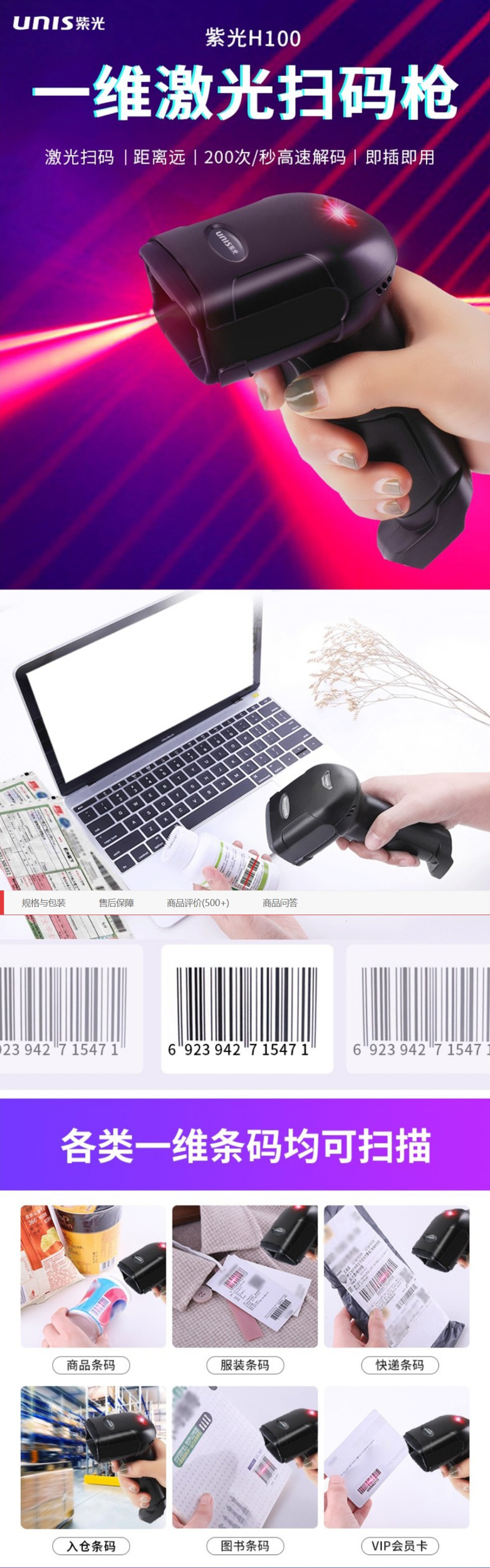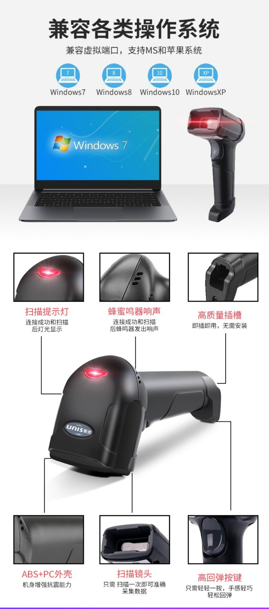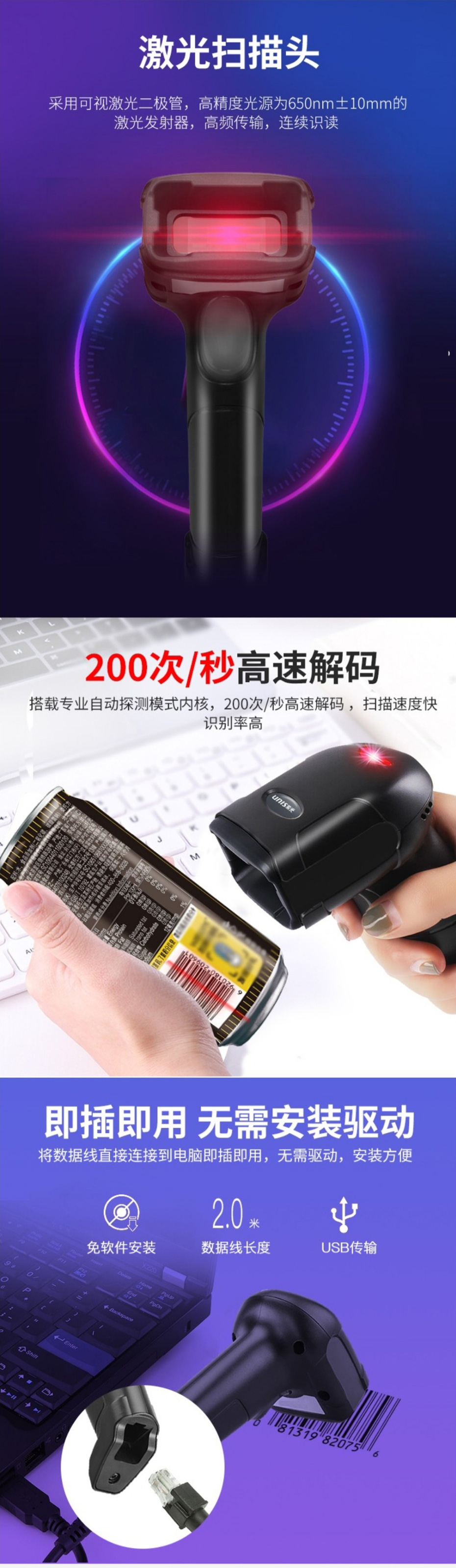 紫光(UNIS)H100 掃描槍,即插即掃方便快捷,一維/超市/商場(chǎng)/企業(yè)皆宜。