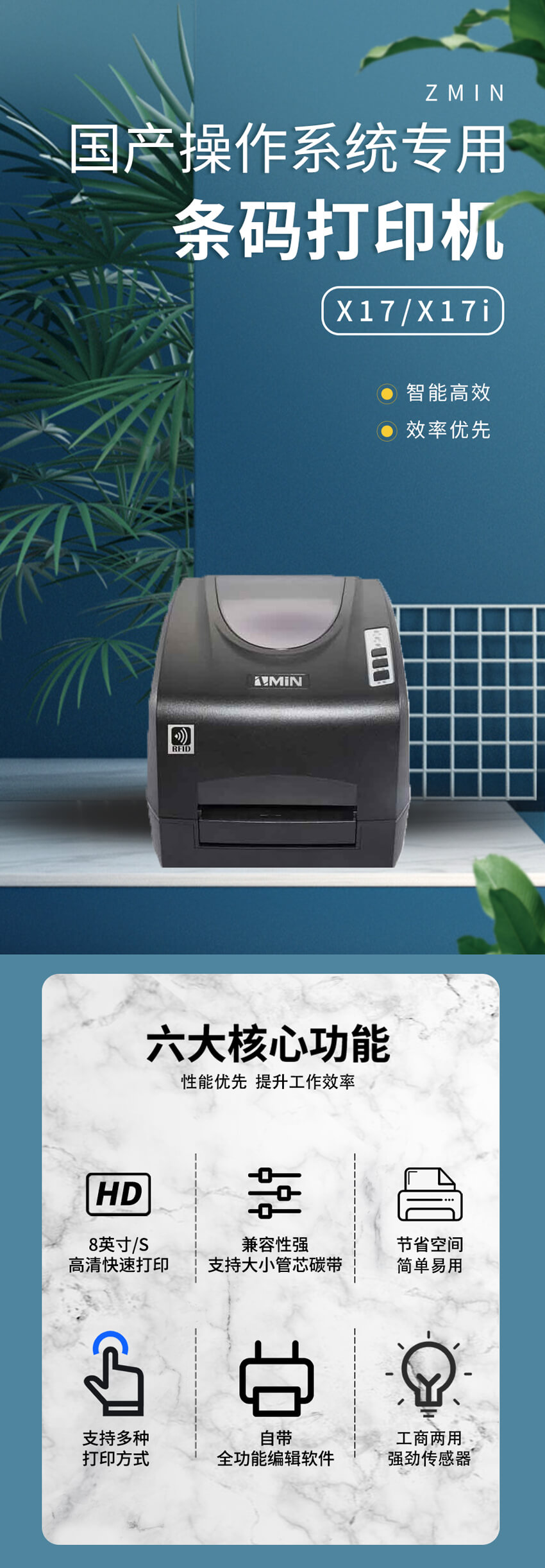 國(guó)產(chǎn)操作系統(tǒng)專用型號(hào)X17/X17i,提供完備的應(yīng)用軟件及二次開(kāi)發(fā)包支持,包含國(guó)產(chǎn)系統(tǒng)驅(qū)動(dòng)程序、條碼標(biāo)簽編輯軟件、網(wǎng)頁(yè)打印服務(wù)等,將Windows系統(tǒng)下條碼標(biāo)簽打印的工作無(wú)縫切換到國(guó)產(chǎn)操作系統(tǒng)。