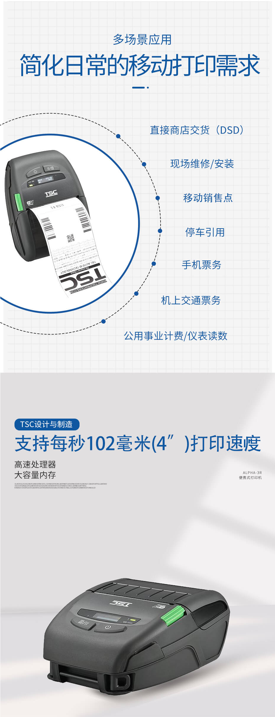 TSC Alpha系列3英寸移動(dòng)打印機(jī)