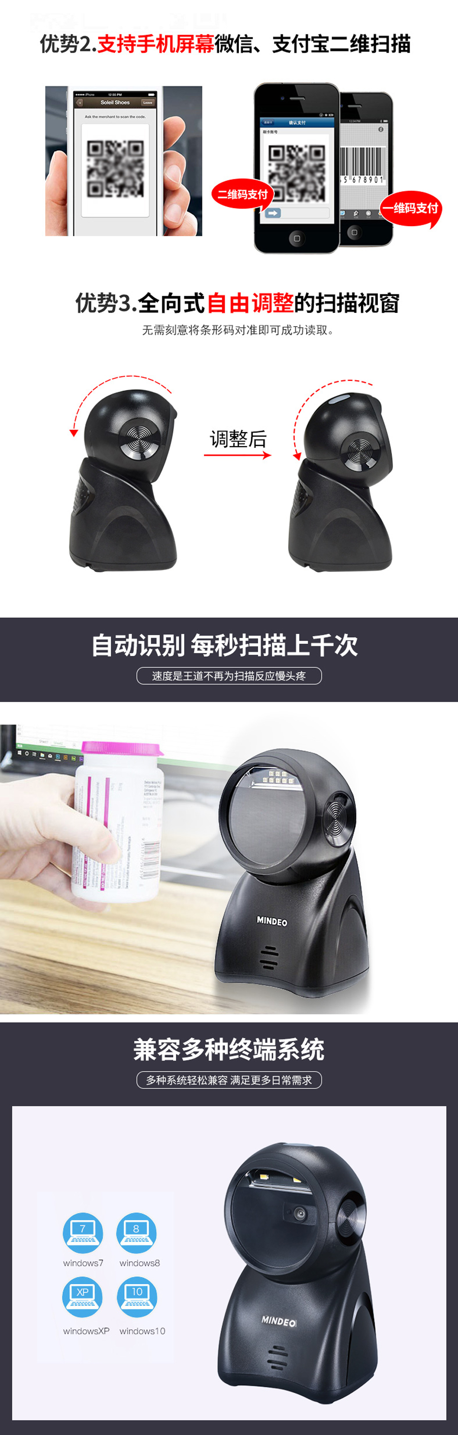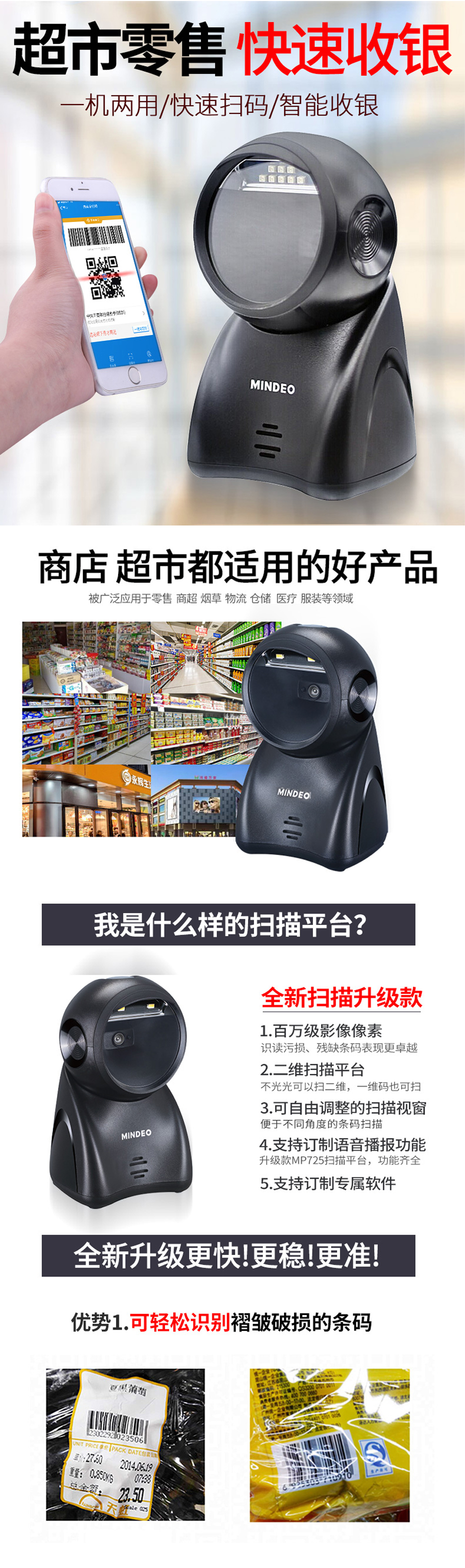 民德M760條碼掃描器,一機(jī)兩用,超市零售掃貨、快速收銀,小體積,大作用。